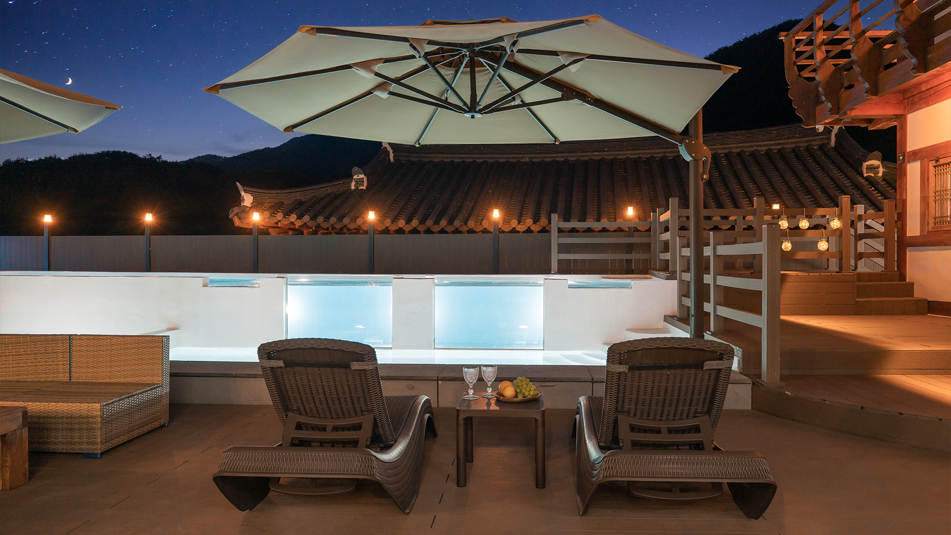 한옥의 밤풍경을 느끼며 고즈넉한 분위기에서 힐링할 수 있습니다.