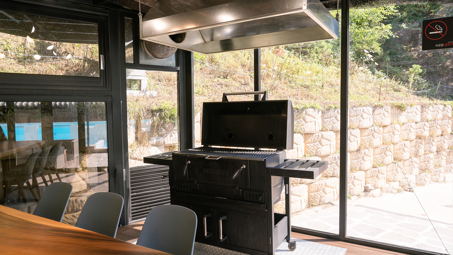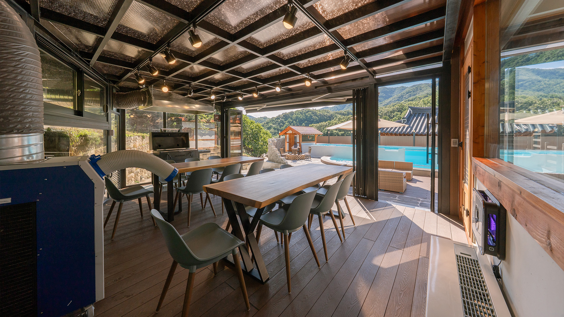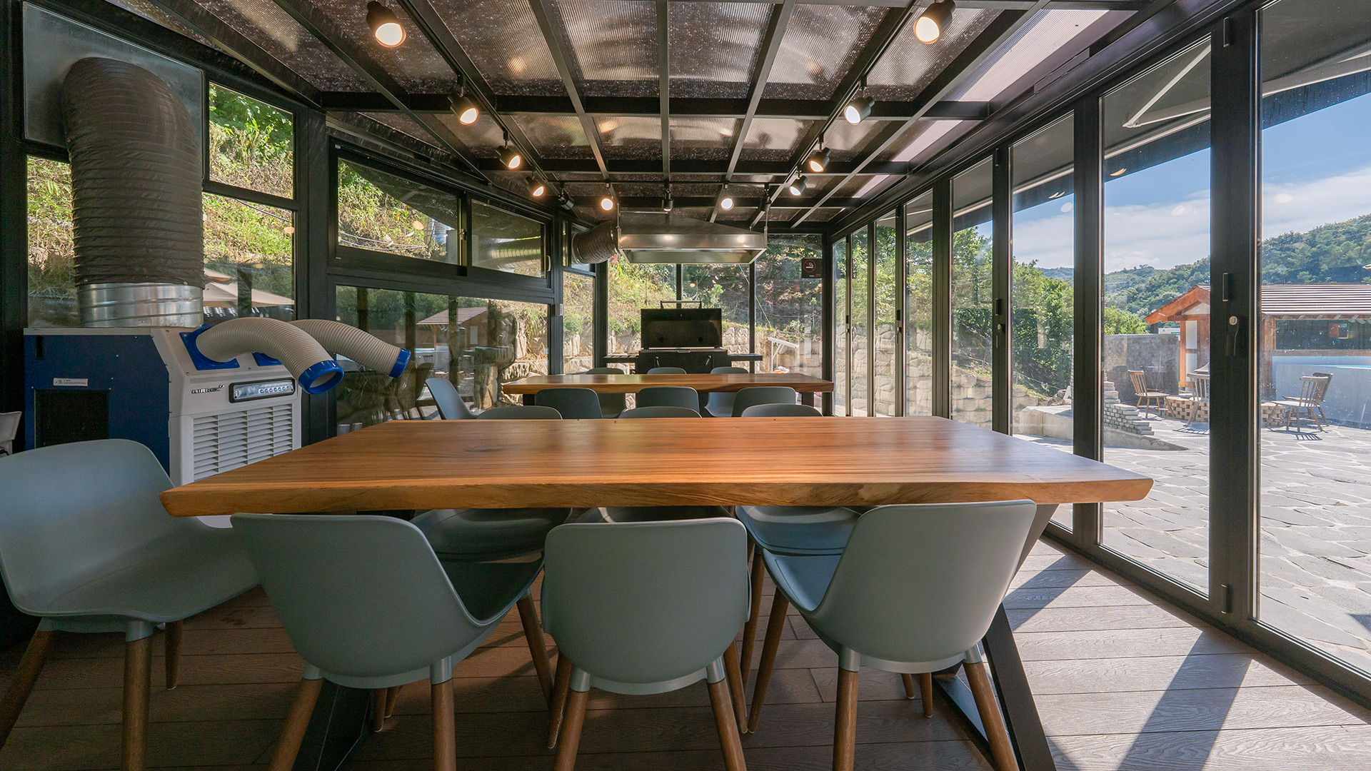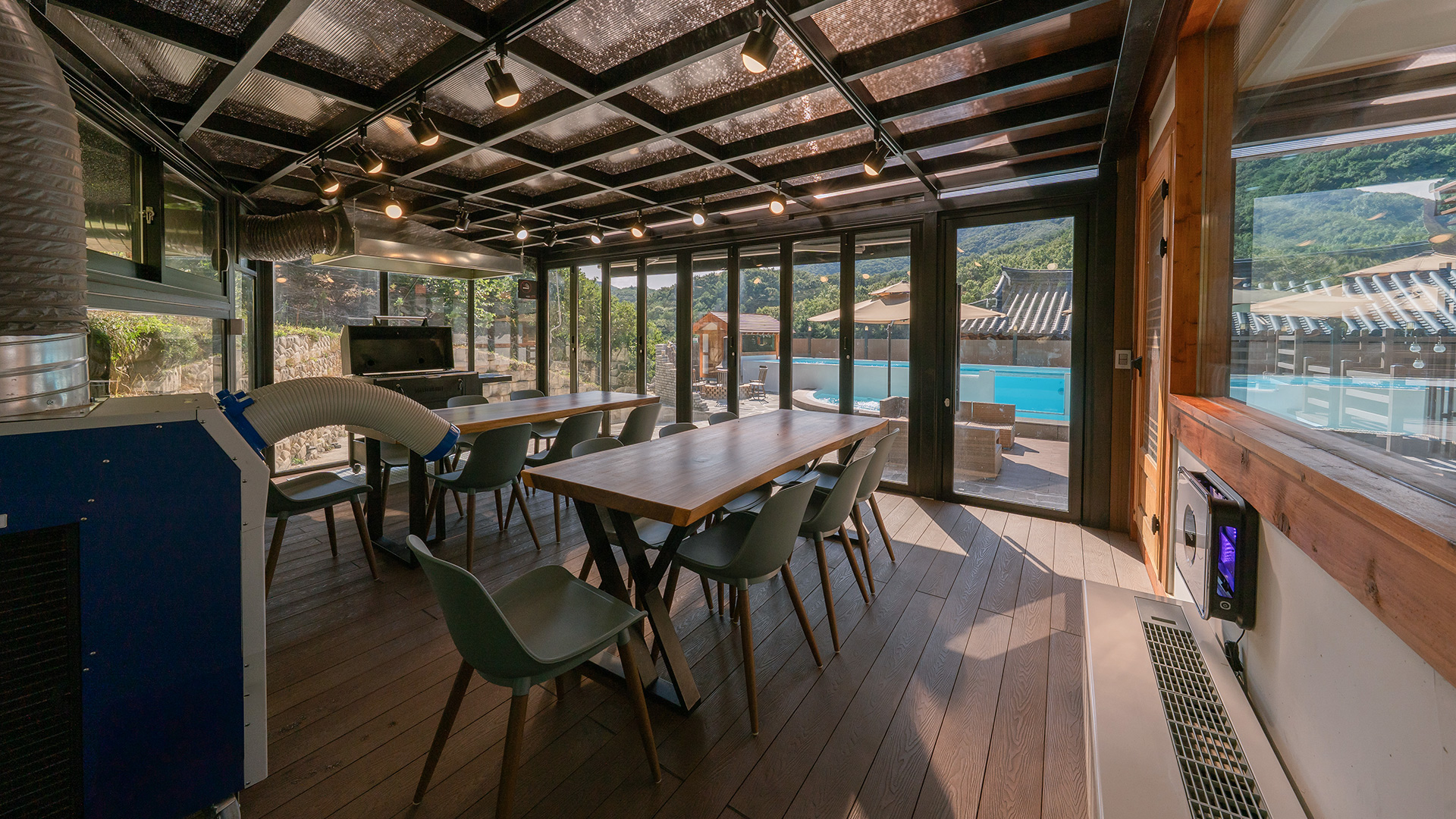 여름에는 시원하게, 겨울에는 따뜻하게 바비큐를 즐길 수 있는 썬룸으로 내부에서도 자연풍경을