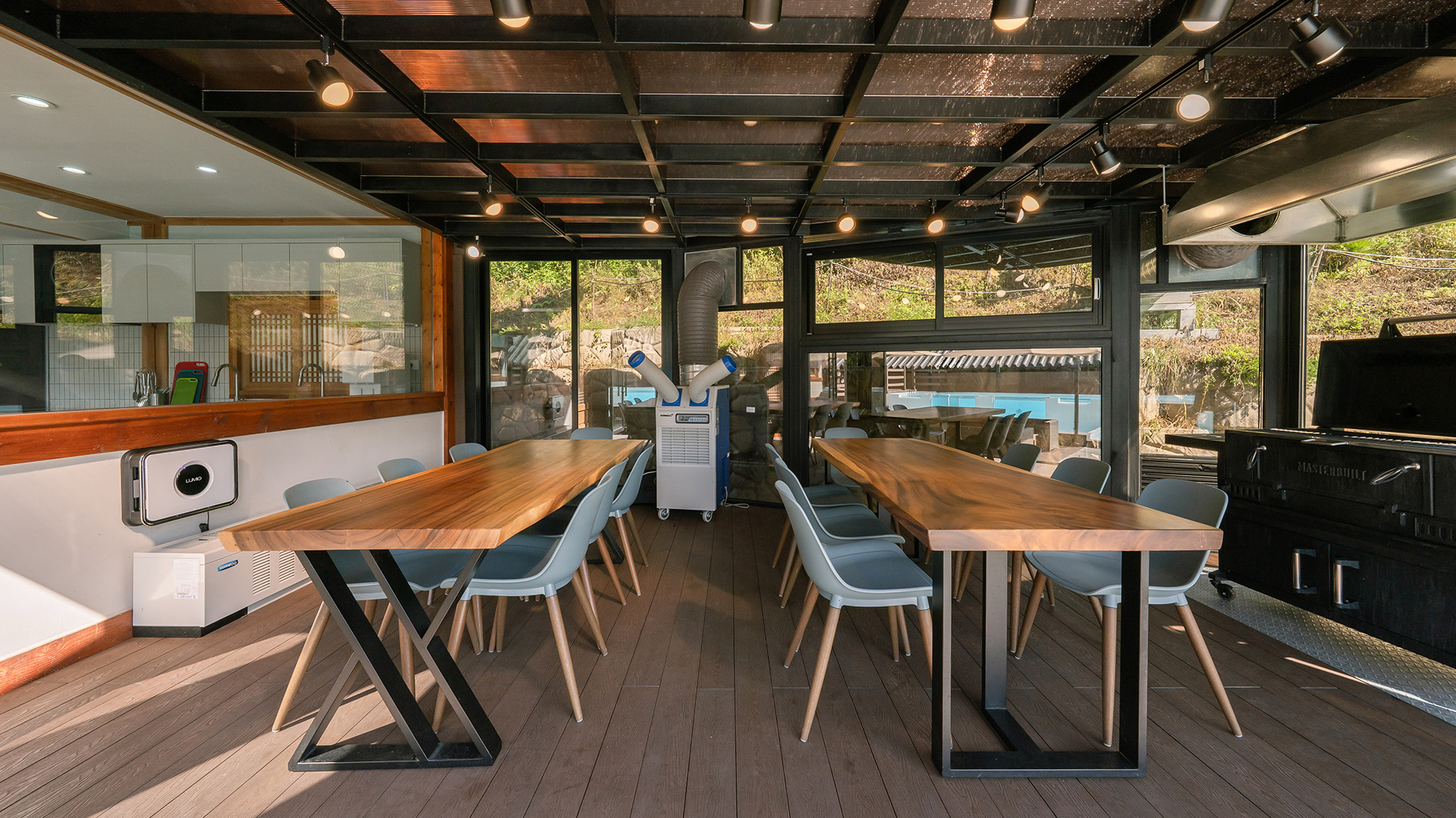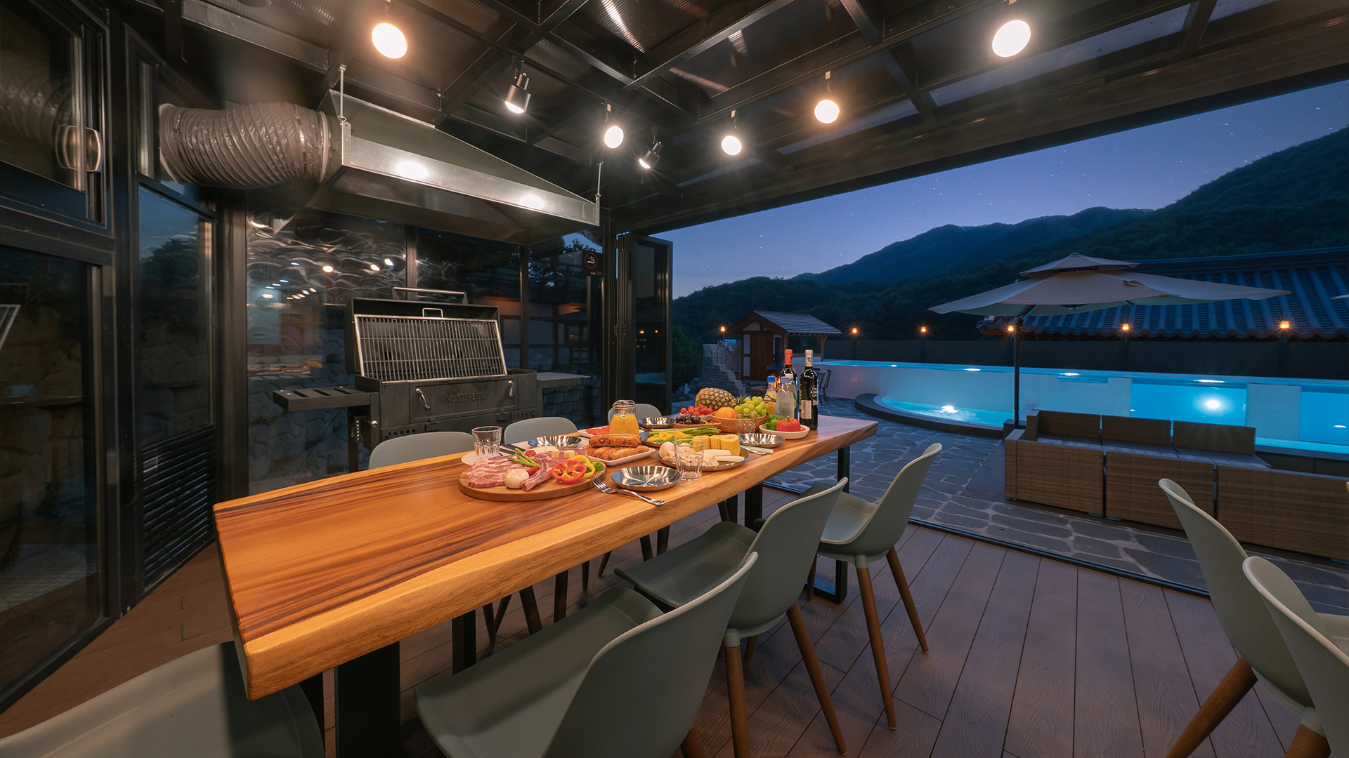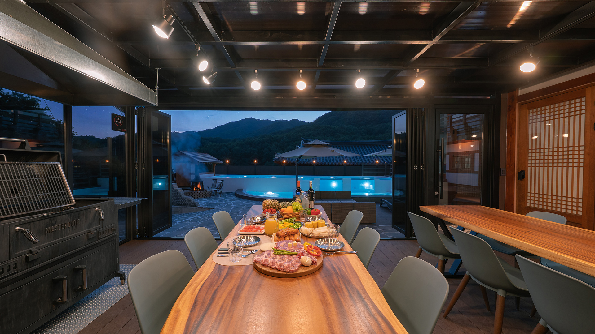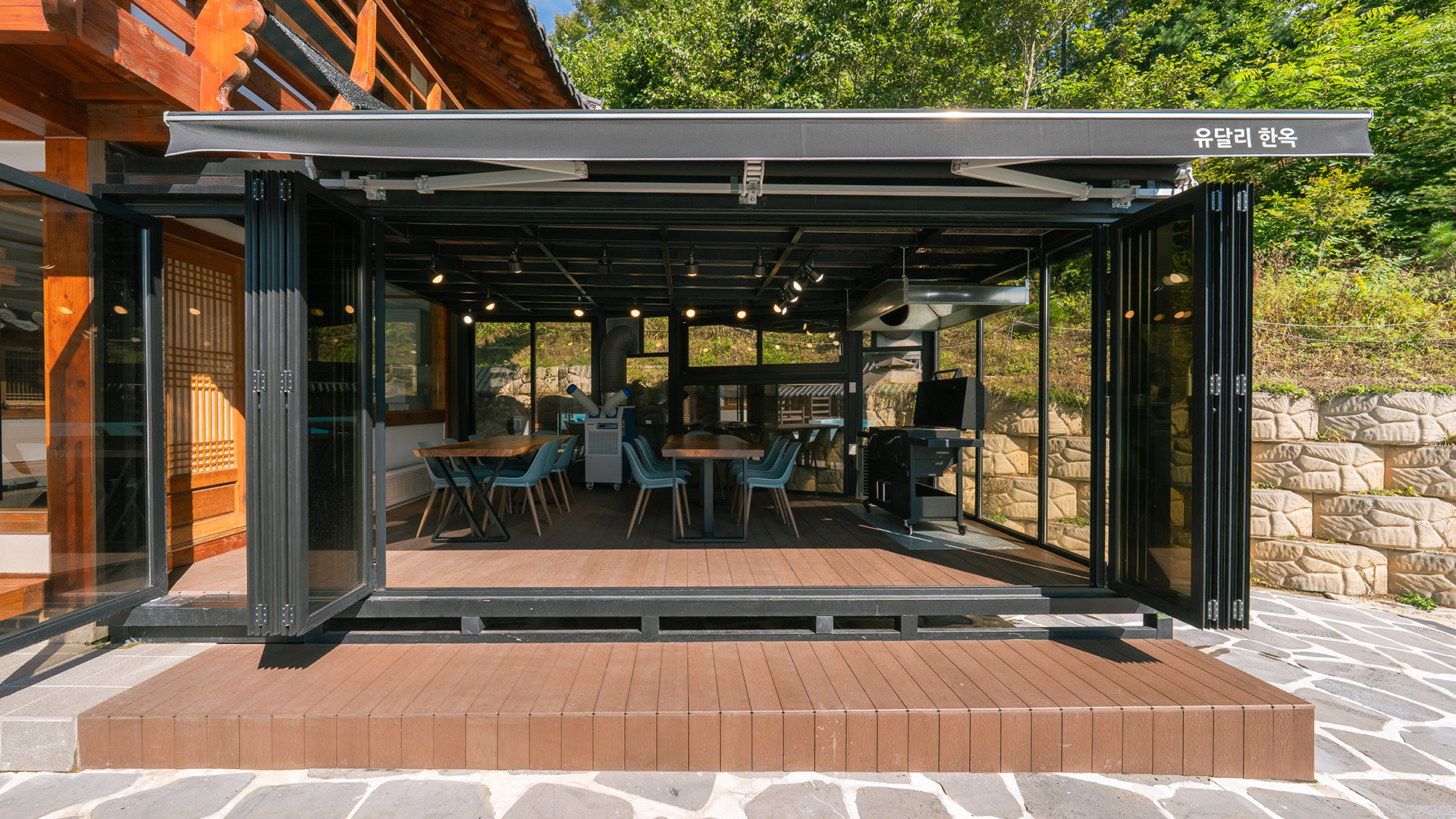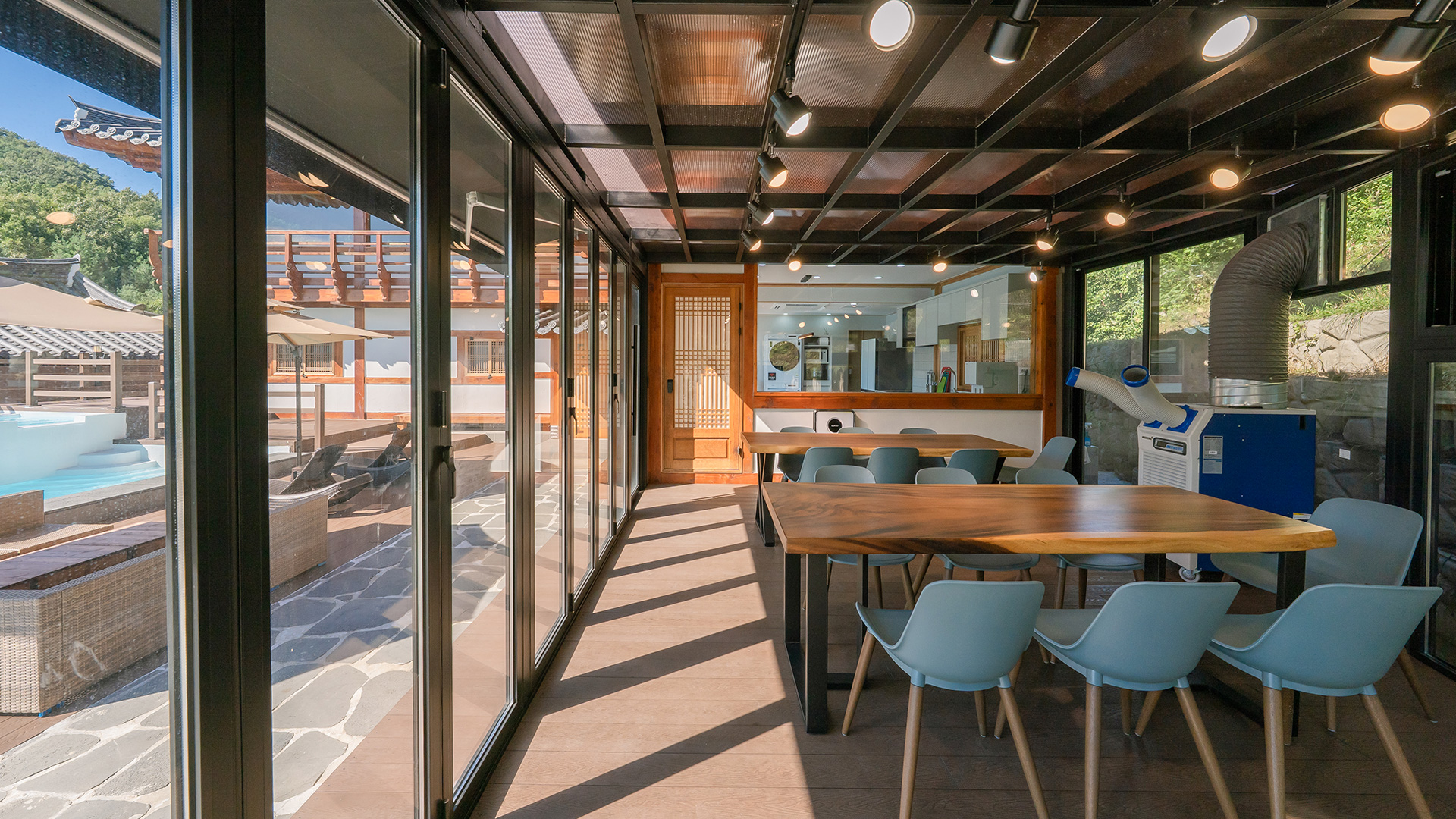 여름에는 시원하게, 겨울에는 따뜻하게 바비큐를 즐길 수 있는 썬룸으로 내부에서도 자연풍경을